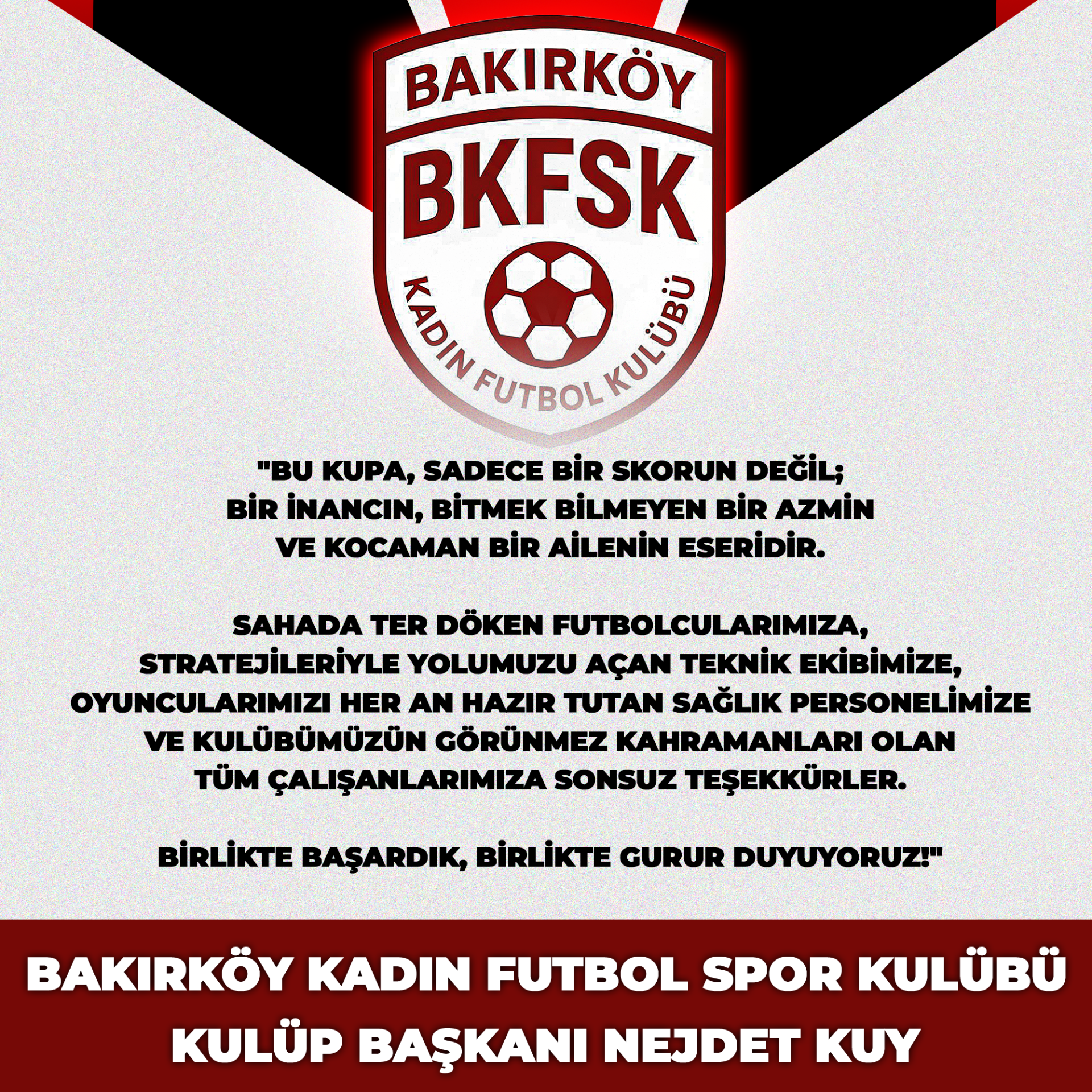 Biz sadece bir takım değil, büyük bir aileyiz. Takım ruhu ve karşılıklı güven, en büyük gücümüzdür. Taraftarlarımızla, yönetimimizle ve sporcularımızla birlikte, kenetlenmiş bir camia olarak ilerliyoruz.